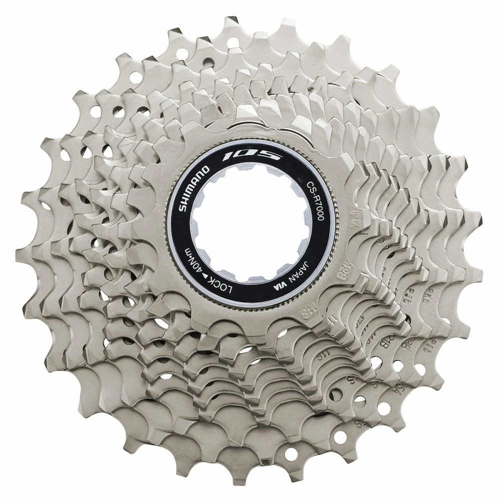 A perfect companion to the SHIMANO 105 R7000 groupset, the R7000 cassette is available in a wide range of road and mixed-surface ratios. It is compatible with HG-EV and HG-X11 chains.